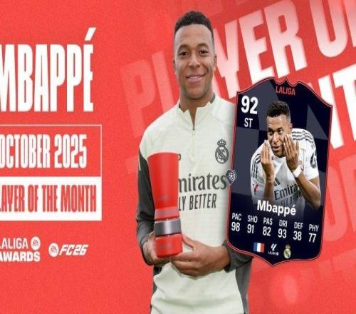 雷速体育11月1报道 西甲联赛官方宣布,皇马前锋姆巴佩当选十月最佳球员。这是姆巴佩连续第二次当选西甲月最...