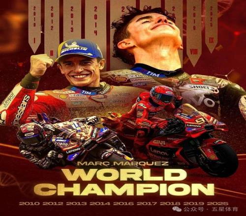 此前他曾赢得2010年125cc总冠军,2012年Moto2总冠军,2013、14、16、17、18、19年MotoGP总冠军。在经历了低谷期后,2025年,马奎兹加盟杜卡迪厂队,正式向重返巅峰发起冲击。他在2025赛季至今的17站比赛中,14次取得冲刺赛第一,11次正赛第一,仅有两站没有站上正赛领奖台,最终提前五站比赛加冕2025赛季MotoGP世界冠军!