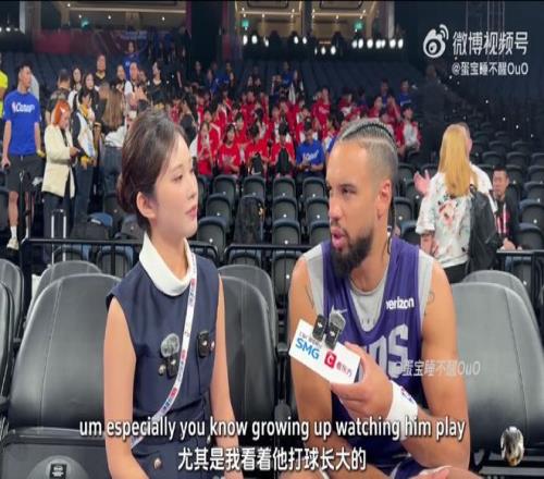 雷速体育10月12报道 NBA中国赛,太阳球员狄龙·布鲁克斯在场边接受了采访。