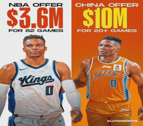 前一阵子,威少爷传出了去海外联赛打球的消息,还有传闻称中国CBA联赛有球员愿意给出4倍于国王的报价。