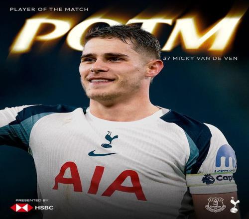 热刺官方宣布,范德芬当选球队与埃弗顿一役队内最佳球员。