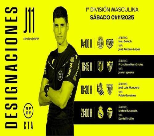 10月31日,西班牙足协官方公布了周六西甲四场比赛的裁判安排,马特奥-布斯克茨将执法皇马vs瓦伦西亚。