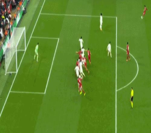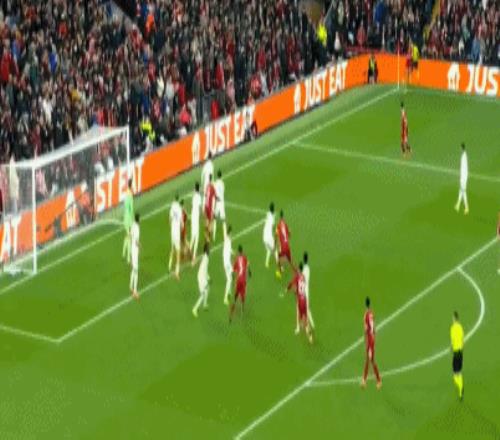 下半场回来利物浦依然牢牢将皇马压制,在之后的2次角球进攻当中,范戴克与埃基蒂克先后近距离头球攻门,库尔图瓦2次无解神扑将利物浦的进球拒之门外。第52分钟,索博斯洛伊任意球攻门,库尔图瓦侧身飞扑再次扑救;只是双拳终究是难挡四手,第61分钟,索博斯洛伊右侧斜45度精准传中,麦卡利斯特中路抢点头球入网,1:0!