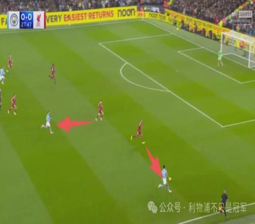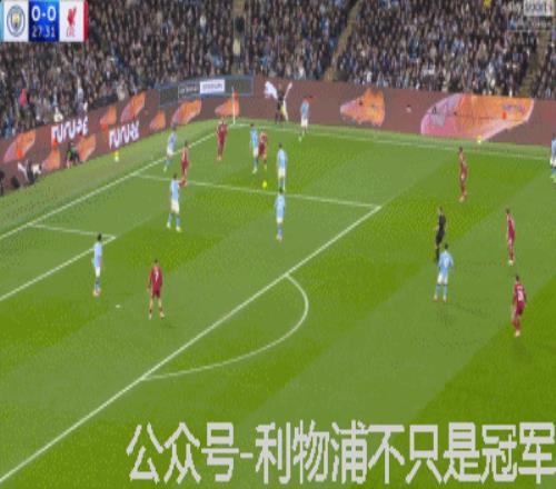 曼城27分50秒左右反击到利物浦左路,由于盯防切尔基的罗伯逊被拉到中路,而曼城攻击到利物浦左路时,左中卫范迪克被迫补防到左后卫位置,这是曼城本场针对利物浦的战术之一,就是要让范迪克离开利物浦中路!