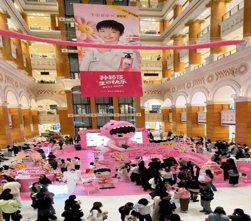 和去年不同的是,今年策划这些盛大生日狂欢的不止球迷,还有孙颖莎代言的品牌们。比如,徐福记包下了南京东路的六个大屏,Keep在北外滩码头举办孙颖莎主题快闪活动,半亩花田在环球港洒下粉色花瓣雨,妮维雅、OPPO等品牌设置了孙颖莎主题门店。