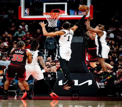 末节决战,布泽利斯轰进远投,科内特2罚不中,马刺连续抢下前场篮板,科内特完成强势补扣。科内特大帽奥科罗,许尔特轰进三分球,公牛取得13分领先。文班亚马外线得分,随后强攻篮下打成了2+1,芝加哥请求暂停。文班亚马单打跳投取分,随后中投打进,马刺轰出了12比6的攻势,分差仅为3分,公牛继续请求暂停。