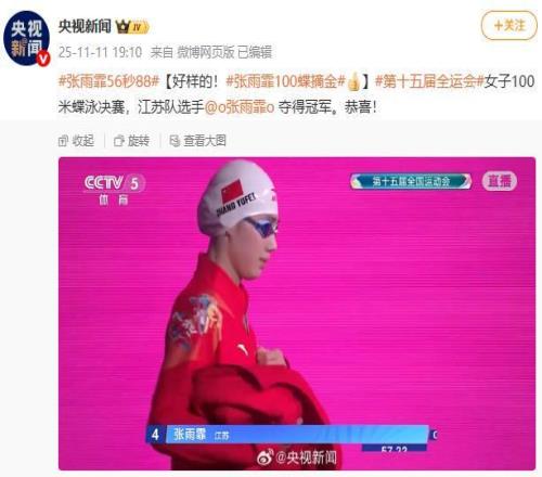 张雨霏夺得全运会女子100米蝶泳冠军 新京报 2025-11-12 13:00:34 据央视新闻微博消息,第十五届全运会女子100米蝶泳决赛,江苏队选手张雨霏夺得冠军。编辑 李忆林子 上一篇: 少了一骑绝尘的黑人兄弟,马拉松还有看头吗 下一篇: 刷新叶诗文在伦敦奥运会上创造的纪录,13岁于子迪全运登顶