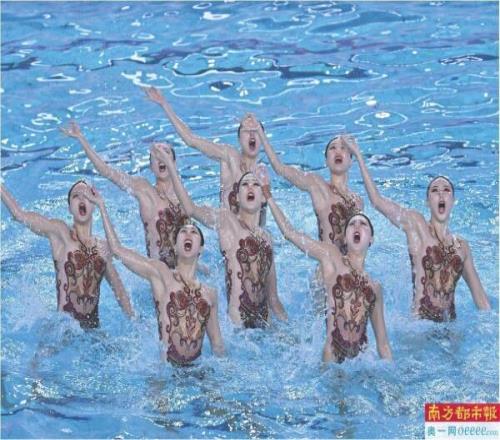 11月13日,花样游泳项目集体技术自选比赛在江门举行。
