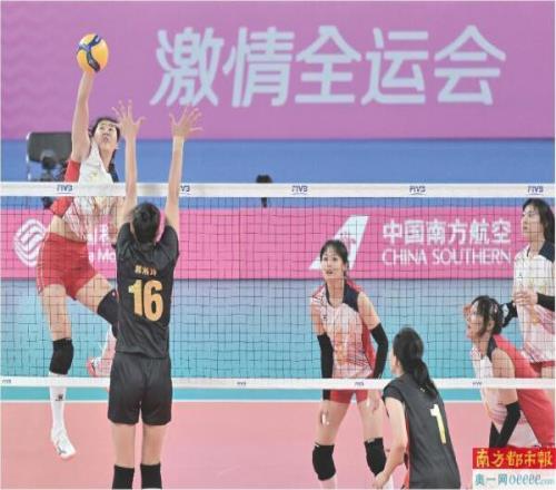 11月11日,江门进行的排球女子20岁以下组小组赛A组比赛现场。