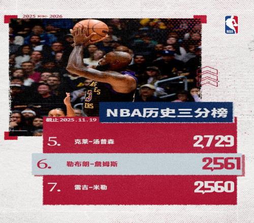 此役,詹姆斯全场总计仅出手7次,但外线手感颇佳,3次三分尝试命中2球,轻松拿到11分,还顺手完成了在历史三分榜上对雷吉-米勒的超越。