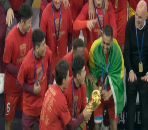 不过,武磊很快调整了自己的情绪。在颁奖礼上,面对镜头,武磊激动的伸出四根手指,示意自己第4次拿到了中超冠军。而在与王燊超一起举起奖杯时,武磊还复刻了梅西世界杯夺冠之后的动作。