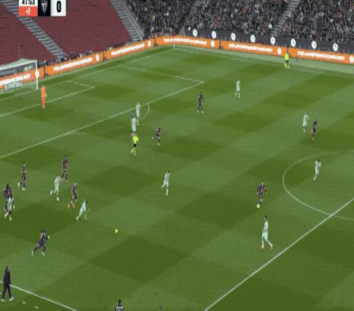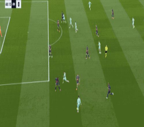 上半场结束,巴萨2-0暂时领先。下半场开始只有4分钟,巴萨前场持续施压完成抢断。