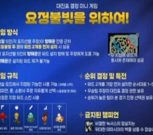 · 每个位置各5人(含该位置主将),在敌方野区附近,率先在两个指定的“妖精之光”点位各插下1个守卫即为成功